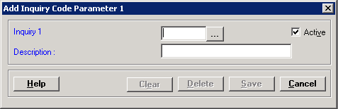 Once an Inquiry 1 or Inquiry 2 response code (first field) has been saved, it cannot be edited (only the Description field may be edited). If the response code is not used, it can be deleted. You can deactivate the response code by unchecking the Active box.